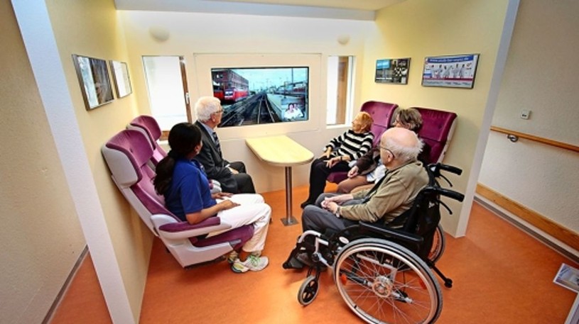 Das Angebot soll helfen, Erinnerungen an früher zu wecken … Auch aus einigen Pflegeeinrichtungen in der Schweiz gibt es Berichte von Bahnabteilen in Senioreneinrichtungen.
